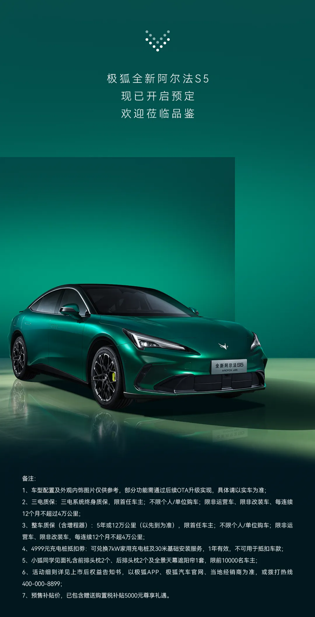 全新阿尔法S5现已开启预售丨预售补贴价11.28万元起